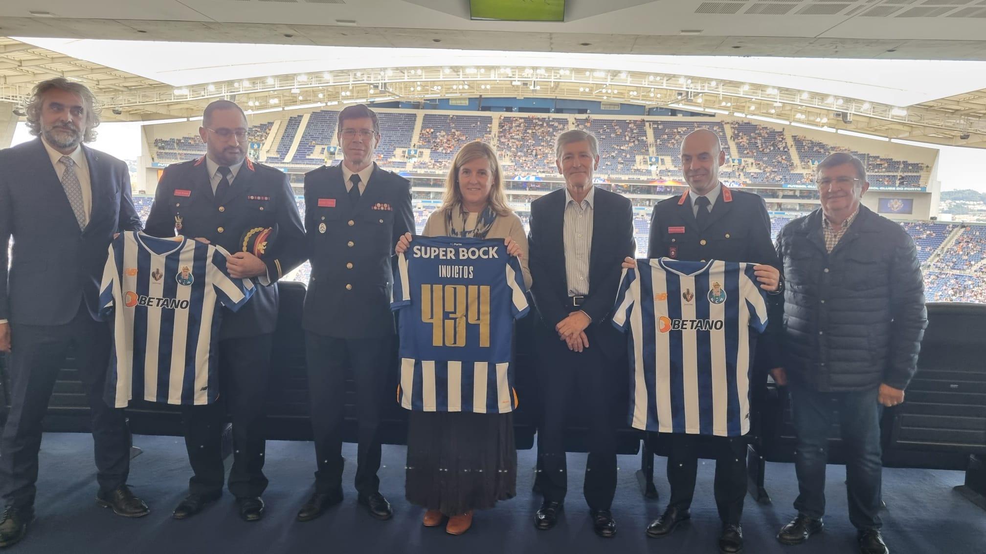 A camisola principal do FC Porto, com o badge, ao centro, em homenagem aos Bombeiros