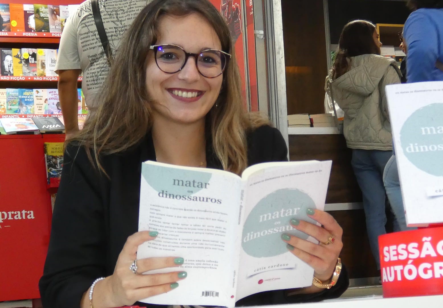 A obra “Matar os Dinossauros” tem chancela da editora Cordel D’Prata, foi publicada durante o mês de agosto do corrente ano e encontra-se disponível para venda no site da editora, mas também, por exemplo, na Livraria Bertrand ou na Wook. A propósito da mesma, Cátia Cardoso esteve na Feira do Livro do Porto em sessão de autógrafos no início de setembro.