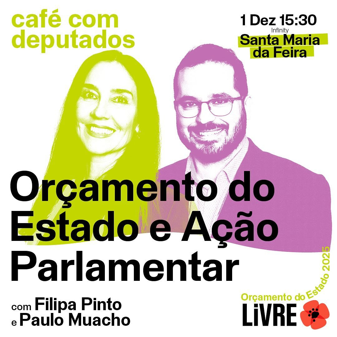 No próximo domingo, dia 1 de dezembro, no Café Infinity em Santa Maria da Feira, às 15h30, alguns deputados do LIVRE irão estar num encontro com membros e apoiantes do partido da papoila sob o tema “Orçamento do Estado e Ação Parlamentar”.