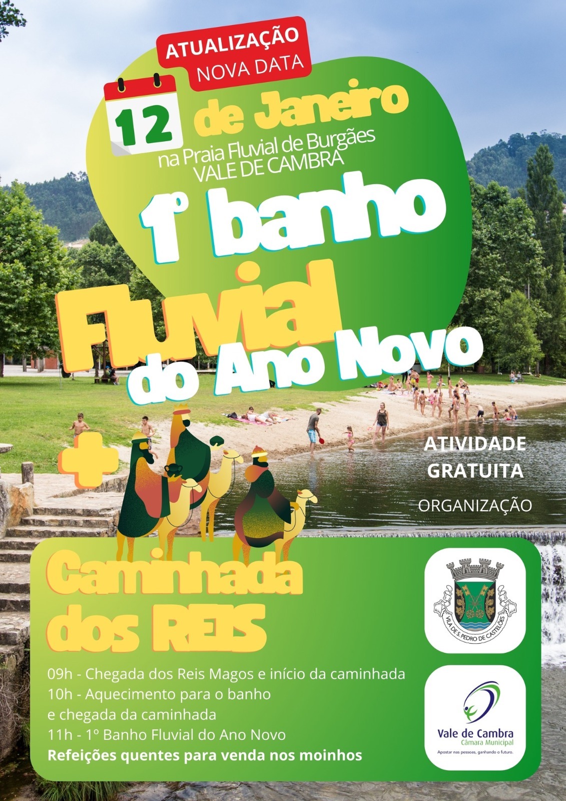 Organizada pela Freguesia de S. Pedro de Castelões, com o apoio da Câmara Municipal de Vale de Cambra, irá decorrer, no próximo dia 12 de janeiro, pelas 9h00, a 1ª Edição do Banho Fluvial e Caminhada dos Reis, na Praia Fluvial de Burgães, uma atividade que promete uma manhã de coragem, convívio e animação.