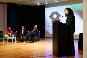Ana Claúdia Valente, representante da ANQEP, foi a terceira a falar na abertura deste evento, e salientou o facto de que Portugal, “apesar do progresso bastante evidente nas gerações mais novas”, não conseguir ainda fazer a convergência das qualificações da população adulta”, ainda assim deu nota da quantidade de adultos que se esforçam para aprender e evoluir indicando que cerca de “um milhão e duzentos mil adultos que já passaram pelos centros qualifica”.