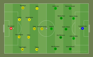 Valido(GR), A.Pinto, M.Rocha(DF), P.Santos, Loum(MD), Puche, D.Nandín, Mansilla, Jason(AT)