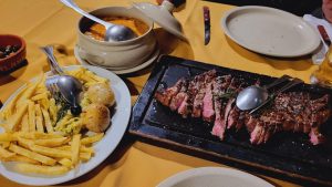 No parlamento a posta é servida com “arroz malandro de feijão, legumes salteados e um combinado de batata frita e a murro”, revelou, explicando que o segredo deste prato é “a simplicidade”. “A carne não leva qualquer tipo de preparação ou tempero, à exceção do sal e alho”, “é cortada na hora, o sal é adicionado já na grelha e o alho após a confeção, na hora de servir”.