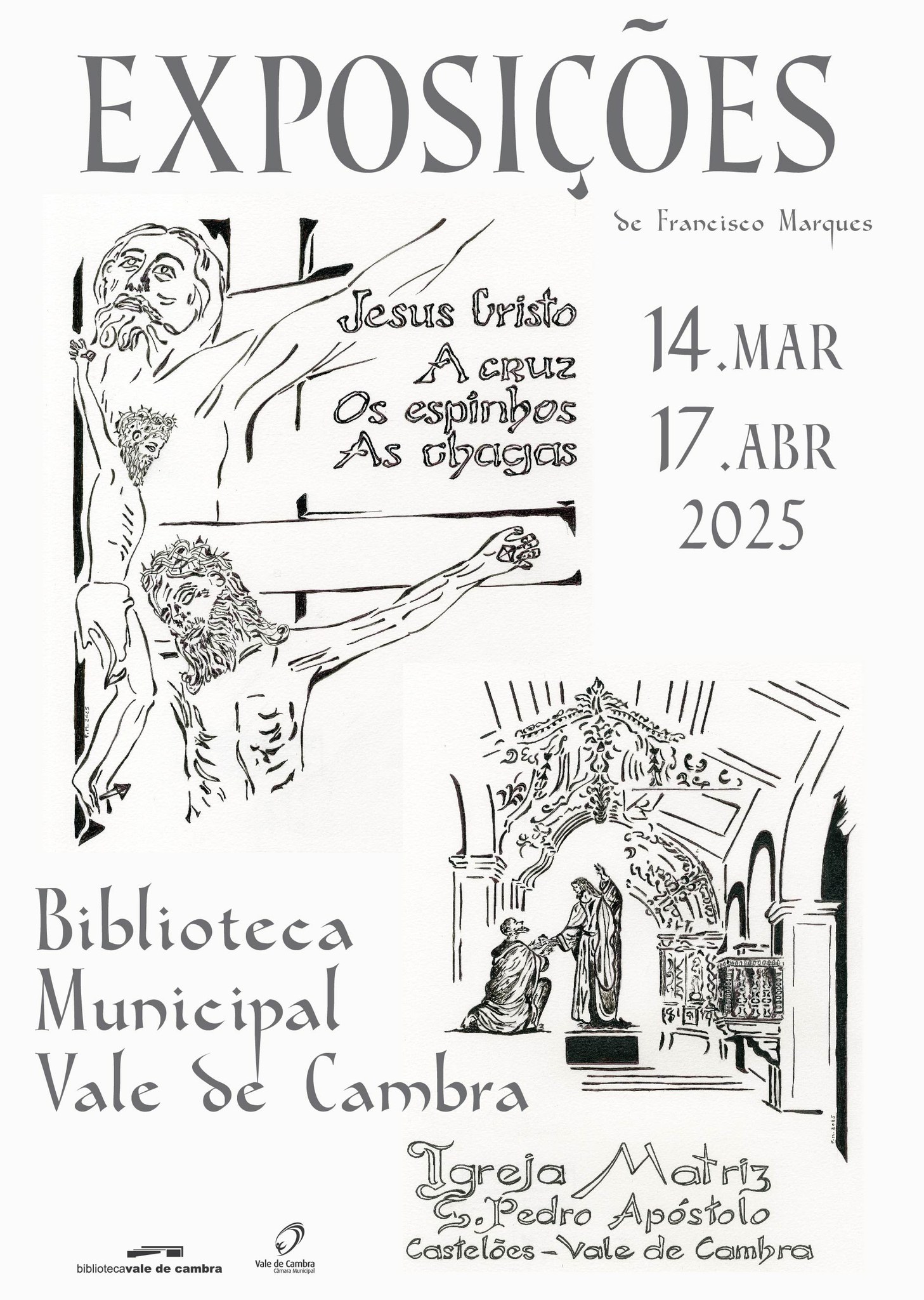 As exposições intituladas “”Jesus Cristo. A cruz. Os espinhos. As chagas” e “Igreja Matriz. S. Pedro Apóstolo. Castelões – Vale de Cambra” contam com entrada livre.