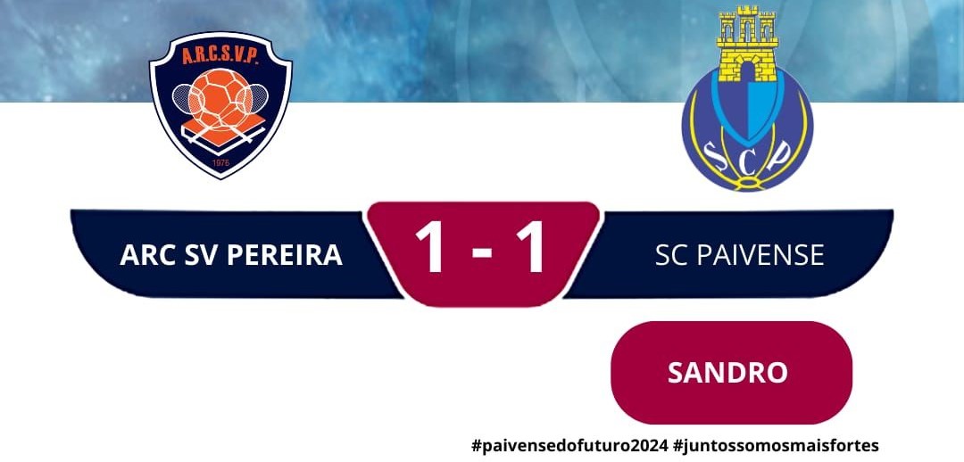O SC Paivense foi ao terreno do S.Vicente Pereira, onde os golos surgiram apenas no arranque do segundo tempo. João Carvalho, no primeiro minuto da segunda parte (46’), inaugurou o marcador. Na reta final da partida, Sandro Gonçalves, em cima do minuto 90, fez o 1-1 final.