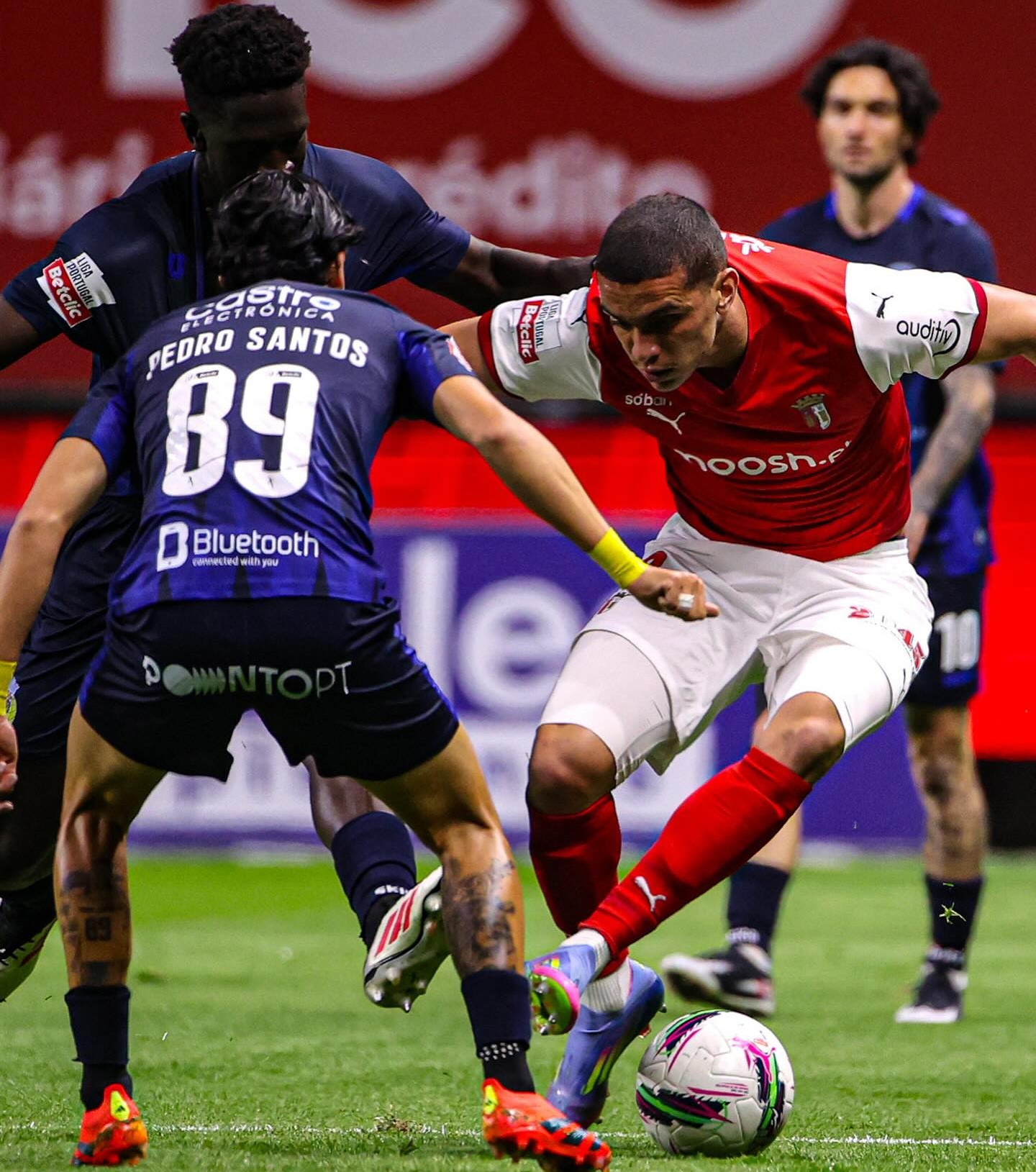 Três minutos depois, foi a vez do Braga marcar. Horta teve tempo e espaço para cruzar e, milimetricamente, meteu a bola no segundo poste, onde Gabri Martínez apareceu e cabeceou para o fundo das redes. Nova análise do VAR para ver as linhas, novo fora de jogo. Legalmente, os bracarenses inauguraram o marcador: uma falha de comunicação entre atletas arouquenses deixou a bola à mercê da recuperação de Racic à entrada da área, que tocou para Horta e este atirou para o fundo das redes.