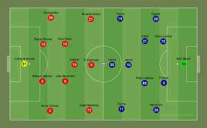 Em relação ao último encontro, Carlos Carvalhal fez render o lesionado Fran Navarro e Gorby por El Ouazzani e Racic. Já Vasco Seabra não contou com Sylla (possivelmente pelas viagens longas e jogos pela seleção), David Simão e Nandín, tendo escolhido Puche, Pedro Santos e Yalçin.