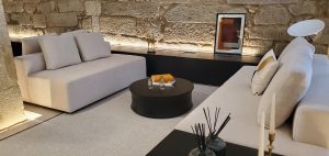 Entrando pela porta do antigo celeiro do Mosteiro, ladeada por uma linda escadaria que dá acesso ao 1º piso, deparámo-nos com um espaço bem mobilado, rodeado de um ambiente extremamente acolhedor, onde não faltam bars devidamente apetrechados e sofás cómodos para os utentes poderem saborear momentos de acolhimento ou de lazer durante a sua estadia, sempre acompanhados de uma grande variedade de doçaria conventual.