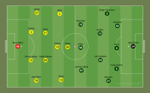 Valido(GR); Popovic, Weverson (DF); P.Moreira, Loum (MD); Puche, Henrique.A, Mansilla, Nandín(AV)