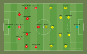 “É uma equipa que efetivamente durante o campeonato foi mexendo um bocadinho com as características dos jogadores e isso mexendo naturalmente com algumas dinâmicas em termos de jogo. Seja a construção, iniciando a 3+2 (três defesas e dois médios), com os dois médios mais por dentro, sendo que um dos médios pode sempre crescer, ficando a 3+1 (três defesas e um médio) Seja a largura dada pelo MT ou pelo central da esquerda, ficando praticamente com uma construção a 4 muitas das vezes, passando quase de um 3x4x3 para um 4x3x3.