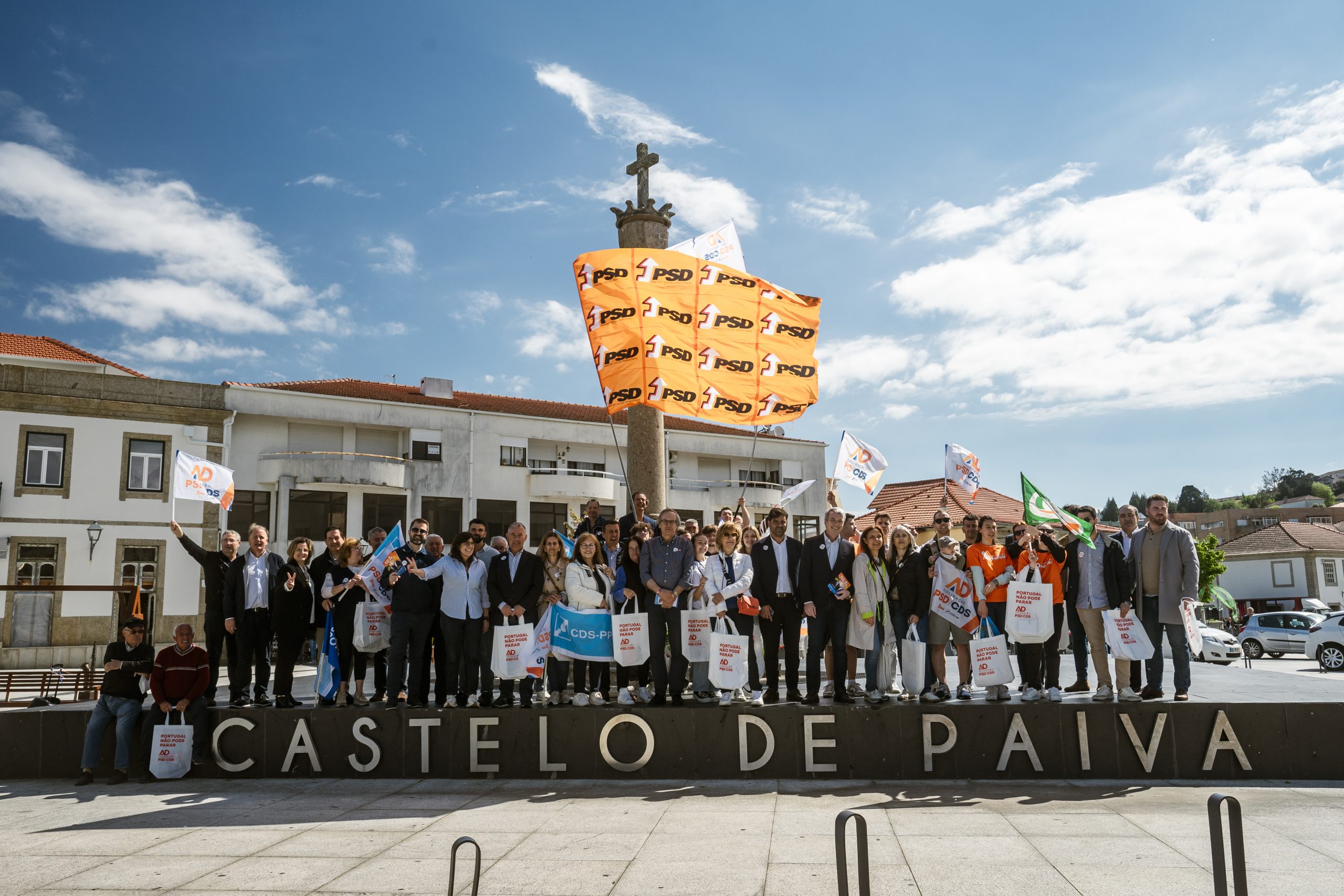 Antes de mais, cumprimento todos os que nos vão ouvir, ver ou ler, e digo que sim, de facto nas últimas eleições nós tivemos aqui uma vitória; mas aquilo que estamos neste momento a pedir a todos os paivenses é que reforcem — reforcem essa votação — para que possamos ter uma vitória ainda mais alargada. Que os paivenses deem, através do seu voto, o reconhecimento que nós achamos justo, por tudo aquilo que fizemos nestes últimos 11 meses em Castelo de Paiva. É bom lembrar os paivenses — muitos deles sabem-no claramente — nunca é de mais dizer que tínhamos um CACE (Centro de Apoio à Criação de Empresas) aqui em Castelo de Paiva que ardeu em 2020 e que o governo anterior, do Partido Socialista, nada fez para a sua reconstrução. Nestes 11 meses, com a colaboração muito intensa do Sr. Presidente da Câmara, o engenheiro José Rocha — a quem também temos de agradecer — temos hoje a certeza de que já foi lançado o concurso e que teremos aqui um centro de formação profissional de primeira linha em Castelo de Paiva, um investimento de mais de 10 milhões de euros, direto do Estado português.