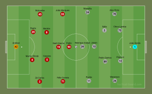 O desfalque notou-se também no banco de suplentes, que nem sequer foi preenchido na totalidade: Vinarcik, Danté, Loum, Yalçin e Nandín foram os únicos cinco jogadores disponíveis.