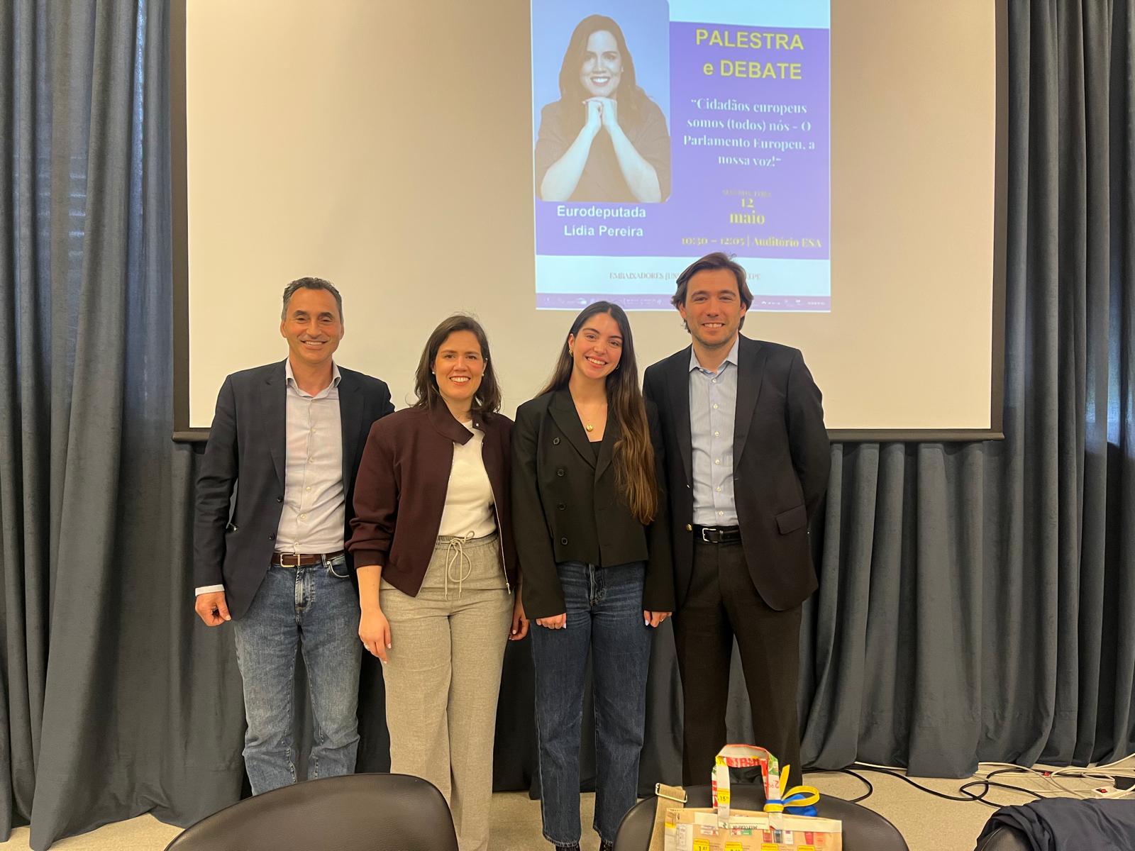 Numa sessão muito participada, a Eurodeputada conversou com os alunos e professores embaixadores sobre os desafios que a Europa enfrenta, com especial destaque para as preocupações e o papel das novas gerações. “A Europa precisa dos jovens. Da sua energia, das suas ideias e da sua exigência. Este tipo de encontros mostra que os jovens estão atentos e querem participar ativamente na construção do projeto europeu”, destacou Lídia Pereira durante a sessão.
