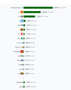 Consulte abaixo a diferença do número de votos de cada partido, comparando com as Legislativas de 2025: