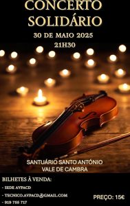 A Associação Valecambrense de Pais e Amigos do Cidadão Deficiente (AVPACD) vai realizar, no próximo dia 30 de maio, às 21h30, um Concerto Solidário à Luz das Velas, no Santuário de Santo António, em Vale de Cambra.