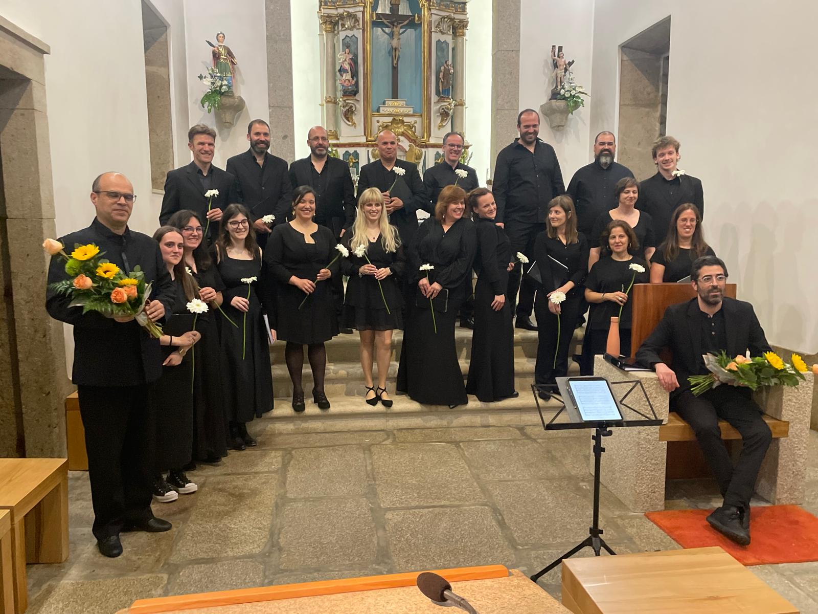 A Igreja de Chave, Arouca, acolheu um momento musical muito especial, na noite do passado sábado, dia 17 de Maio, com o Coro de Câmara de São João da Madeira, sob a direcção de Ivo Brandão, e o organista António Esteireiro. O concerto, que decorreu num ambiente profundamente espiritual, reuniu dezenas de pessoas que se deixaram envolver pela harmonia e sensibilidade do repertório apresentado – o Requiem de Maurice Duruflé, na sua versão para órgão, coro e solistas, uma obra que nunca havia sido apresentada em Arouca, e que, por cá, só nesta Igreja e no seu órgão Grenzing é possível levar a cabo. O concerto foi promovido com o apoio da paróquia de Chave, numa iniciativa de promoção da cultura em íntima ligação ao culto. De resto, o pároco, Pe. José Joaquim Ribeiro, foi também elemento activo neste concerto, não só ajudando a proporcionar todas as condições para que ele fosse possível, como no apoio ao organista. Também o Conselho para os Assuntos Económicos da paróquia foi fundamental, no apoio à organização. Na plateia, estiveram presentes Alzira Santos, em representação da Junta de Freguesia de Chave, e o vereador António Duarte, em representação da Câmara Municipal de Arouca.