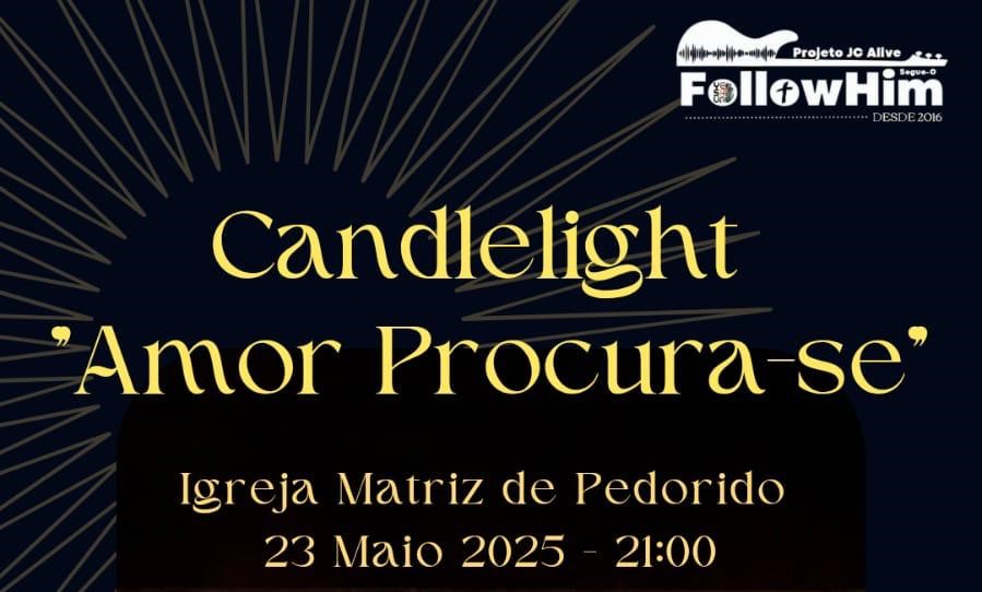 Na próxima sexta-feira, dia 23 de maio, às 21h00, a Igreja Matriz de Pedorido, em Castelo de Paiva, vai receber um concerto-oração do grupo “Follow Him”. Com o título “Candlelight: Amor Procura-se”, este será um momento onde os participantes são convidados a uma experiência espiritual e musical.