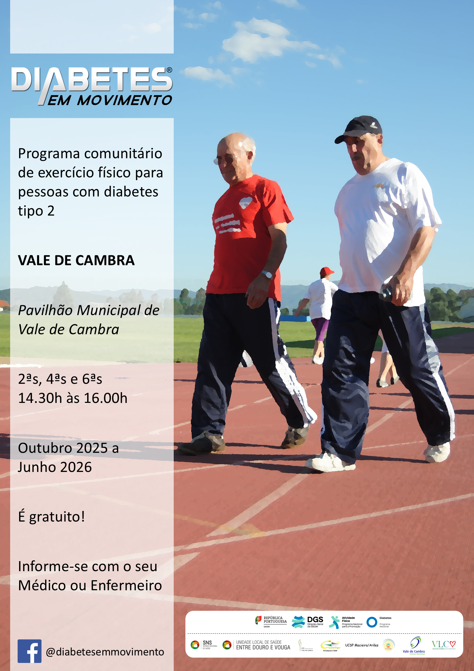 A partir de outubro de 2025, Vale de Cambra volta a dinamizar o programa “Diabetes em Movimento”, uma iniciativa de promoção do exercício físico dirigida a pessoas com diabetes tipo 2. Este programa comunitário resulta de uma parceria entre a Câmara Municipal de Vale de Cambra, a Unidade Local de Saúde de Entre Douro e Vouga e a UCC Vale Mágico.
