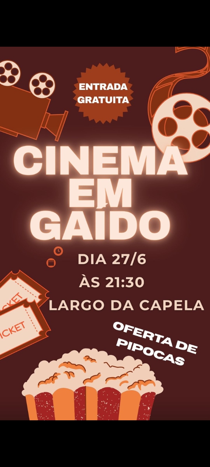 Num convite aberto a toda a população, a organização promete uma noite de verão descontraída e bem passada, com direito a pipocas e bebidas gratuitas, num ambiente de convívio e partilha.
