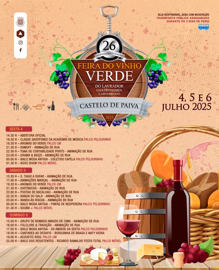 O presidente da Câmara Municipal, José Rocha, mostra-se confiante no sucesso do evento e destaca a forte adesão dos expositores e parceiros locais. “A Feira do Vinho Verde já é uma referência nacional e continua a crescer. Atrai milhares de visitantes, muitos deles do estrangeiro, o que mostra o potencial que Castelo de Paiva tem para se projetar em várias frentes.”