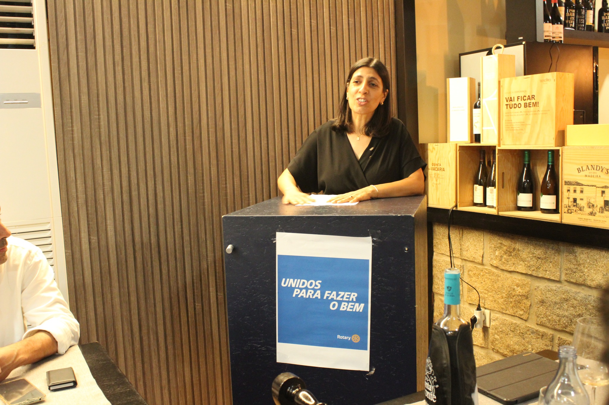 Luísa Soares, presidente cessante, transmitiu a liderança, referindo que o “Rotary não pára porque a roda dentada que o simboliza não é apenas um emblema estático; ela está em constante movimento, refletindo a natureza ativa e dinâmica do Rotary”. No balanço do ano rotário 2024-2025, destacou a atribuição de bolsas de estudo, a realização da 3.ª edição do concurso Dreams 4All, o reconhecimento profissional a Albino Martins e a angariação de 1500 vacinas angariadas para o combate à poliomielite.