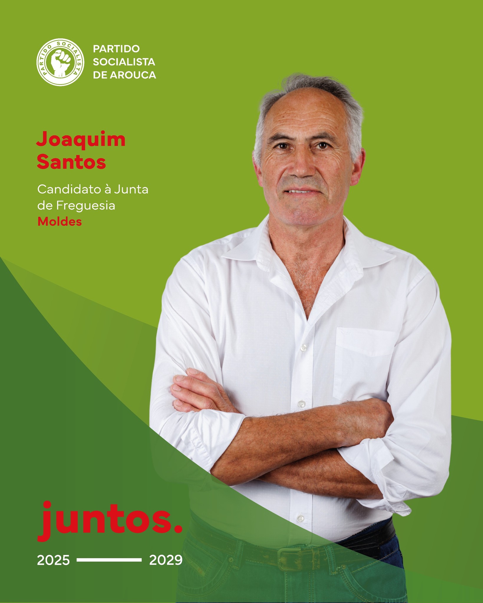 O Partido Socialista escolheu Joaquim Santos como candidato à Junta de Freguesia de Moldes. Tem 63 anos, é empresário agrícola, pai de dois filhos e avô de dois netos. É conhecido pela ligação a esta sua localidade, envolvendo-se nas coletividades, movimentos cívicos e iniciativas comunitárias.