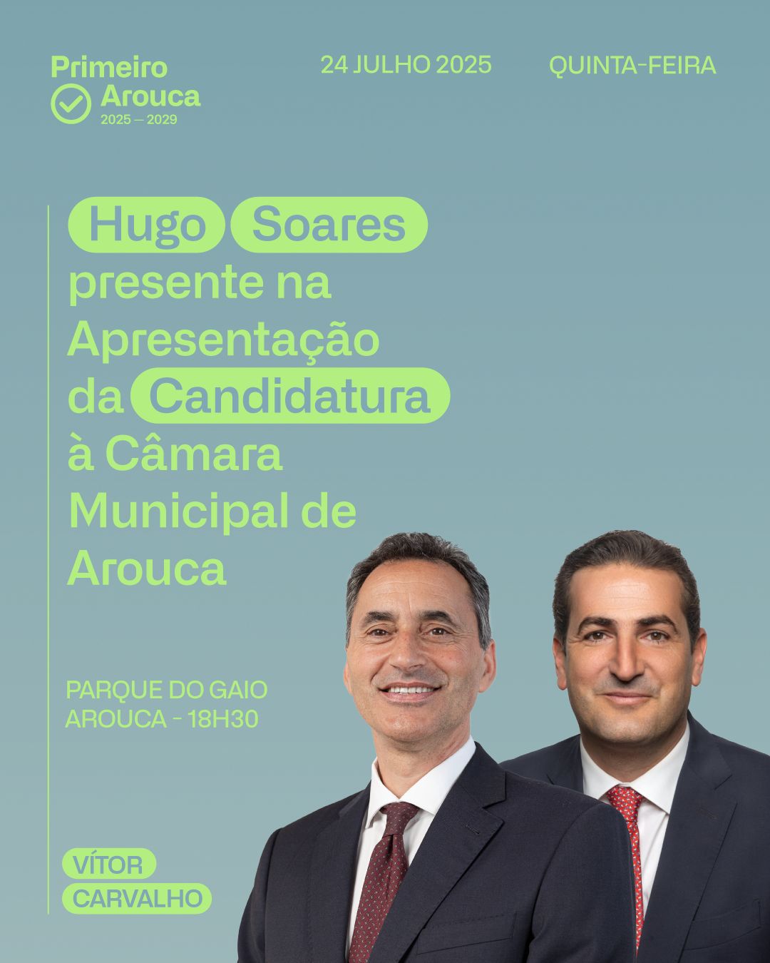 A candidatura de Vítor Carvalho, que junta independentes e se prevê que integre vários partidos, ganha, assim, um novo impulso. Refira-se que o CDS-PP já anunciou publicamente o seu apoio a esta coligação, recandidatando também o atual presidente da Assembleia Municipal de Arouca, Pedro Vieira.