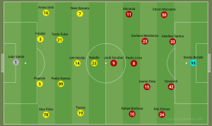 Mantl(GR), Esgaio, Danté(DF), Loum, Mateo, D.Simao(MD), Puche, Barbero, Mansilla(AT)
