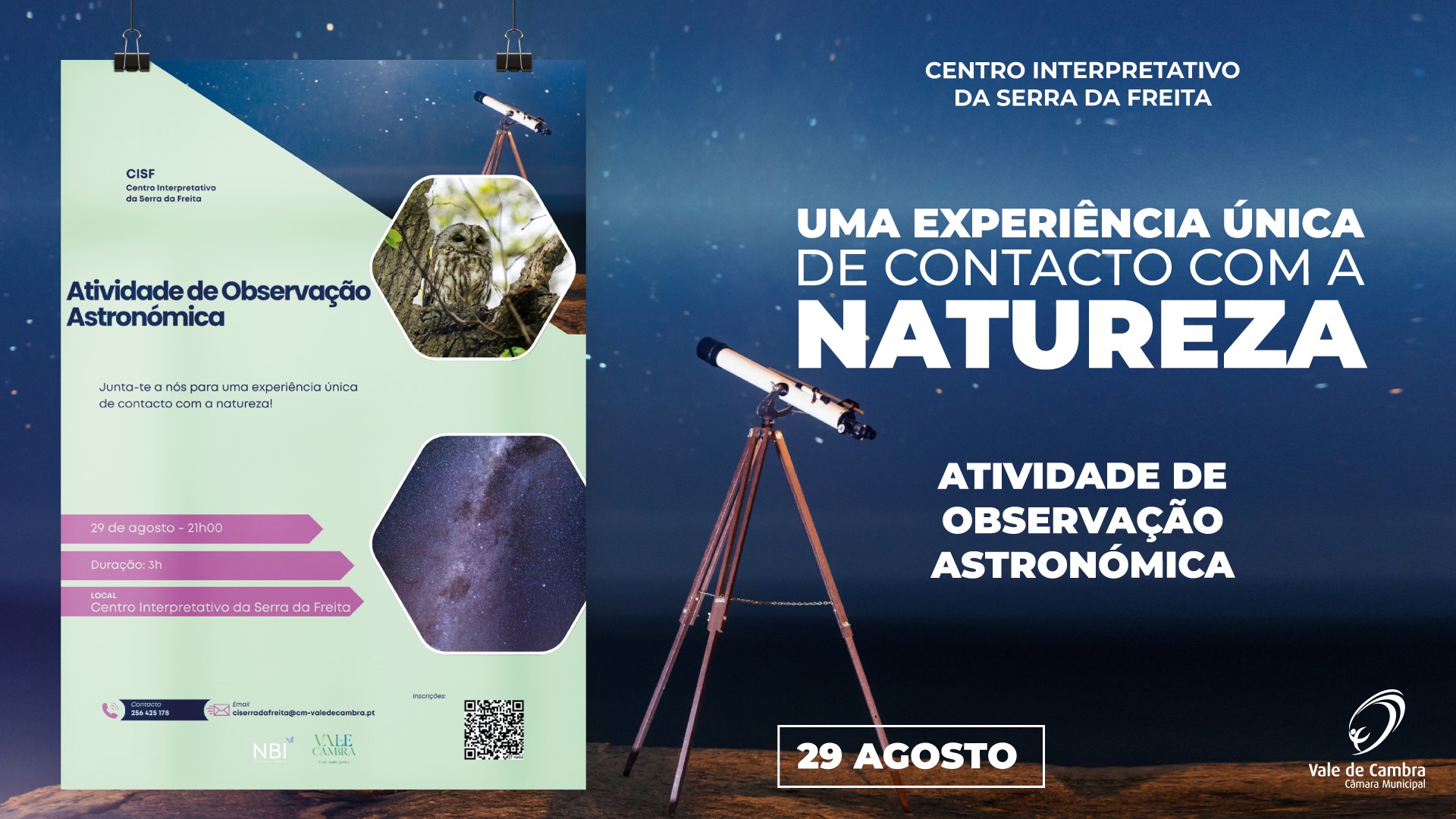 O Município de Vale de Cambra vai promover uma atividade de observação astronómica, agendada para a noite de 29 de agosto, pelas 21h00, no Centro Interpretativo da Serra da Freita.