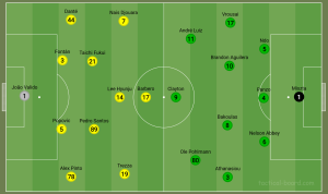 84 – Saíram Clayton e Nikos, entraram Petrasso e Gual