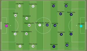 Castillo(GR)M.Nóbrega, Lebedenko(DF), T.Silva, Mitrovic, N.Santos(MD), Camara, Ndoye, V.Félix(AT)