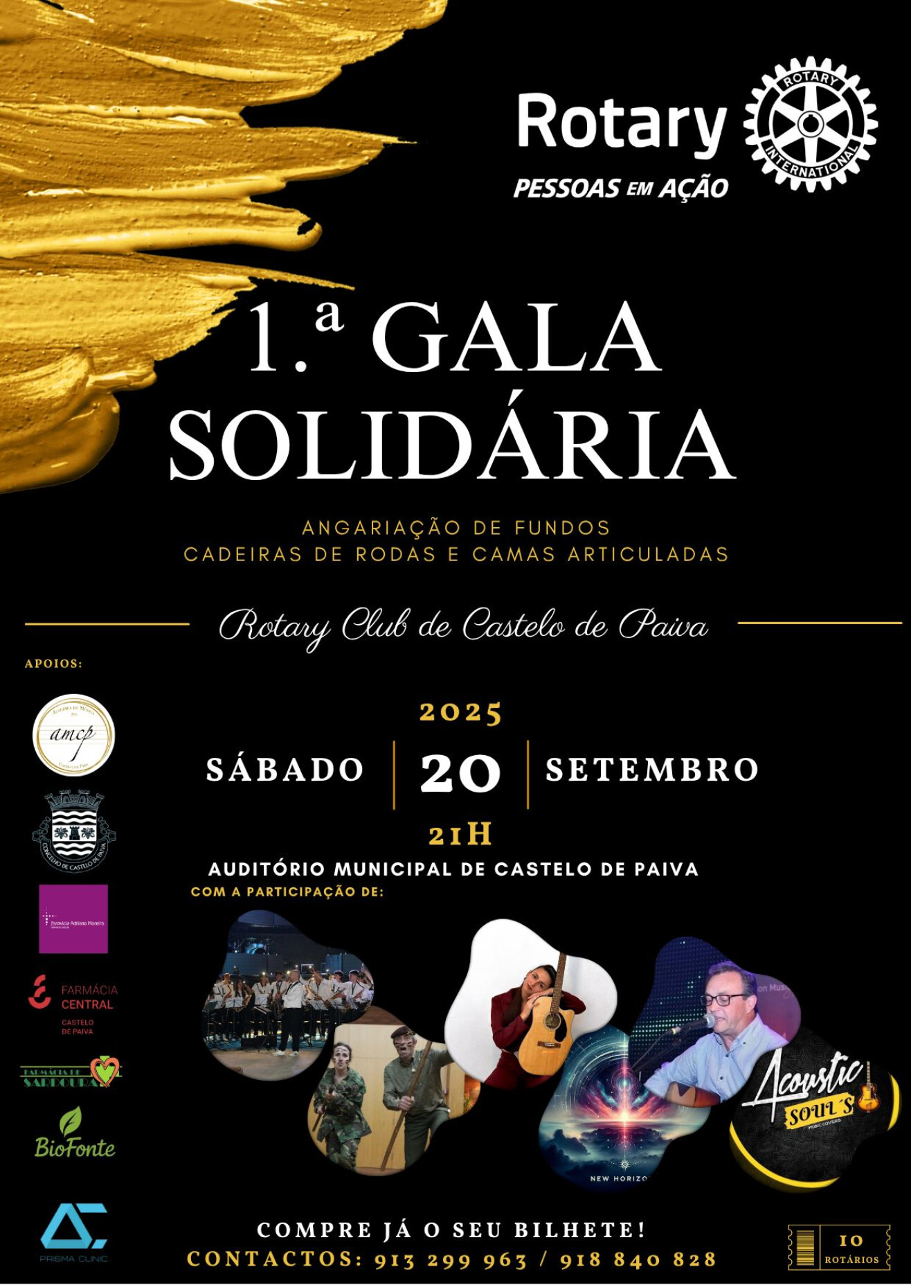 O Rotary Club de Castelo de Paiva vai realizar, no próximo dia 20 de setembro, pelas 21h00, no Auditório Municipal, a sua primeira Gala Solidária, iniciativa que tem como objetivo angariar fundos para a aquisição de camas articuladas e cadeiras de rodas.