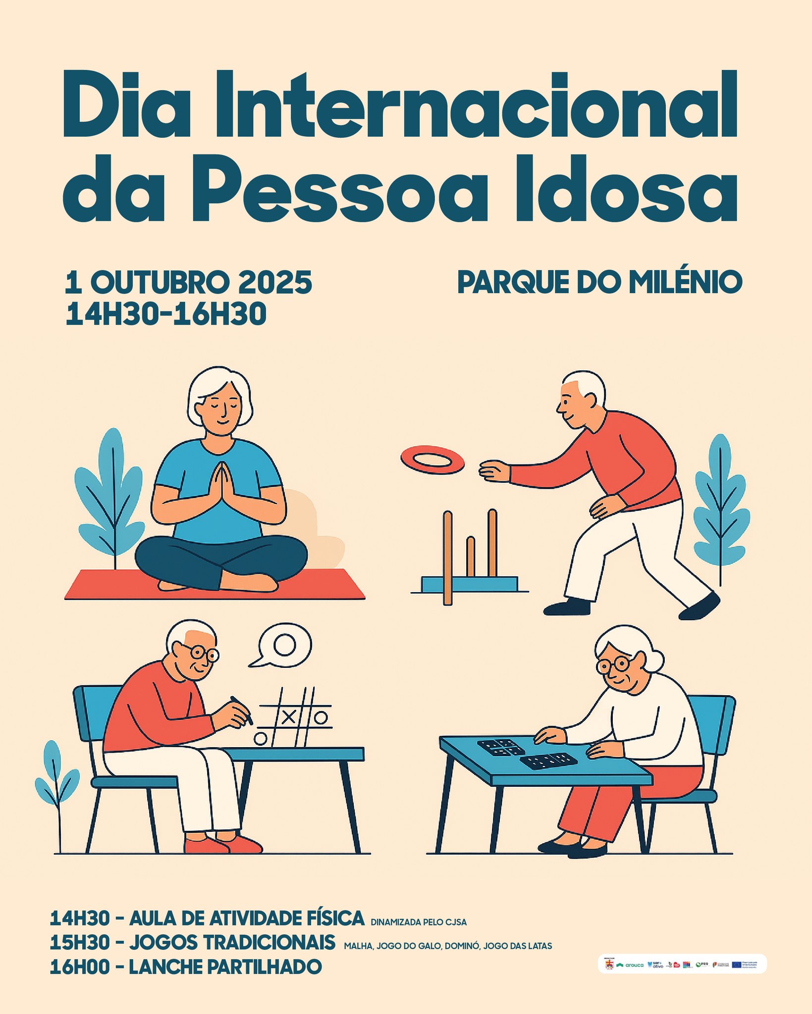 O Dia Internacional da Pessoa Idosa, que se celebra na próxima quarta-feira, 1 de outubro, vai ser assinalado em Arouca com uma tarde repleta de atividades. O programa inclui uma aula de atividade física, jogos tradicionais e um lanche partilhado, entre as 14h30 e as 16h30, no Parque Milénio.