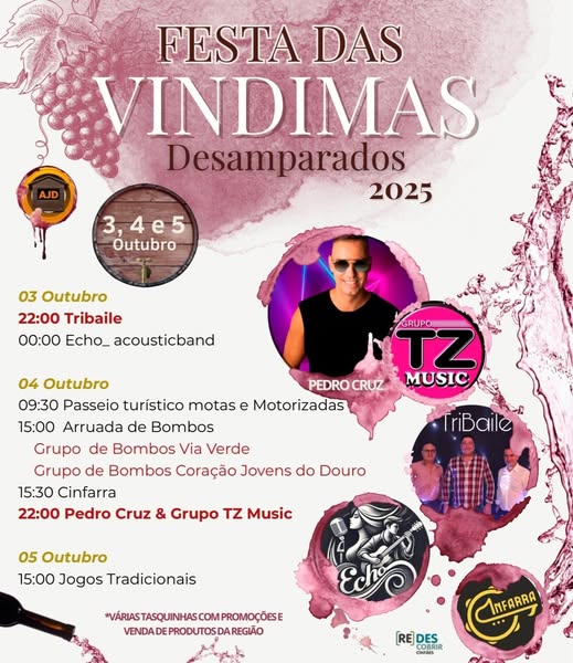 A freguesia de Oliveira do Douro volta a ser palco da tradicional Festa das Vindimas, organizada pela Associação de Jovens dos Desamparados, que decorre de 3 a 5 de outubro.