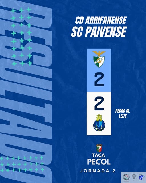 O Paivense deslocou-se este domingo, 28 de setembro, ao Estádio Maria Carolina Leite Resende Garcia, em Arrifana, para defrontar o Arrifanense em jogo da 2.ª jornada da Taça Distrital de Aveiro. O encontro terminou empatado a duas bolas, num duelo equilibrado e com emoção até ao apito final.