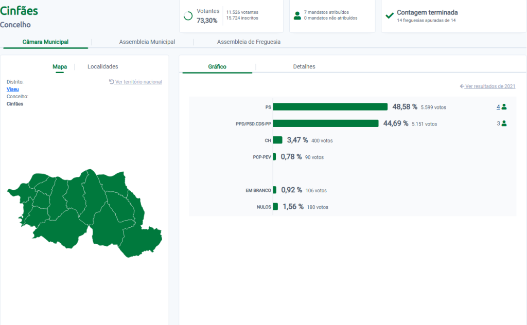 Não há comparativo com as eleições passadas, fruto do CHEGA não ter apresentado lista à Câmara Municipal de Cinfães.
