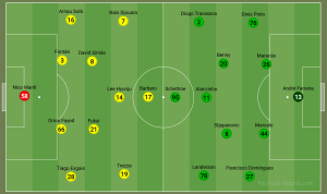 Valido (GR), A.Pinto, D.Monteiro, Popovic,(DF), Van Ee, Pablo (MD), Jansonas, Puche, Mansilla (AT)