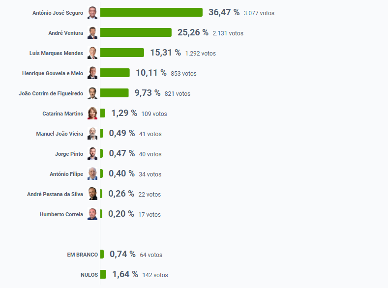 André Ventura ficou em segundo lugar, com 2.131 votos (25,26%).