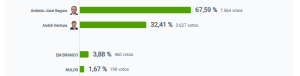 Nota para o crescimento dos votos em branco, que passaram de 153 na 1ª volta para 460 na votação deste domingo. Também os votos nulos subiram, mas apenas ligeiramente, passando de 177 para 198.