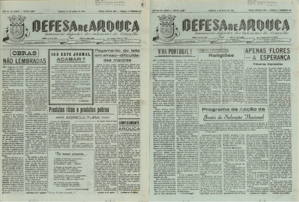 Ao nível do concelho parece que as novas já chegaram velhas. É que o único jornal em publicação no concelho e, portanto, o que mais penetração tinha nas casas da freguesia, o semanário Defesa de Arouca – fundado em 1926 e alinhado com o regime –, com publicação aos sábados, omitiu qualquer menção à revolução na sua edição de 27 de abril.