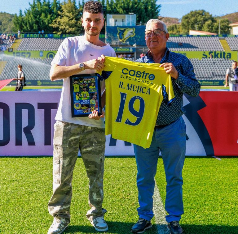 O goleador Rafa Mujica esteve em terras de Santa Mafalda e foi homenageado pelo FC Arouca Simão Duarte
